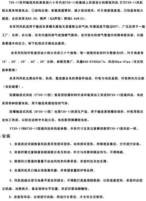 產(chǎn)品名稱:T35-11(T40-11)型軸流通風(fēng)機(jī)