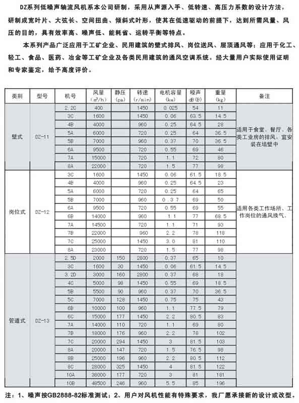 1、4-72、4-79型離心風機 2、9-19、9-26型高壓離心風機 六、冷卻風機系列 1、LFF型冷庫專用風機 2、DBF型變壓器專用風機 3、SFZ型空調室外機組冷卻風機 七、GDF系列離心式管道風機 八、YDF系列噴流誘導風機 九、SDS系列射流式通風機 十、HG系列變風量風機箱 十一、HVD低噪聲吸頂式房間通風 十二、SR900、DJF型電動腳踏兩用 十三、防火閥、排煙閥、風口 十四、消聲器系列 十五、安裝、維護及訂貨說明 |