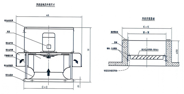 3、機殼:本風機整體結構強度按50m/s極端室外風速的條件進行設計。風機采用鋁合金材質,經拉伸、卷邊等加工,在保障風機足夠強度的前提下,提高了風機外形的美觀,減輕了風機的自重,降低了對屋頂基礎的強度要求,且抗風能力較好。