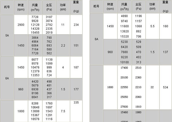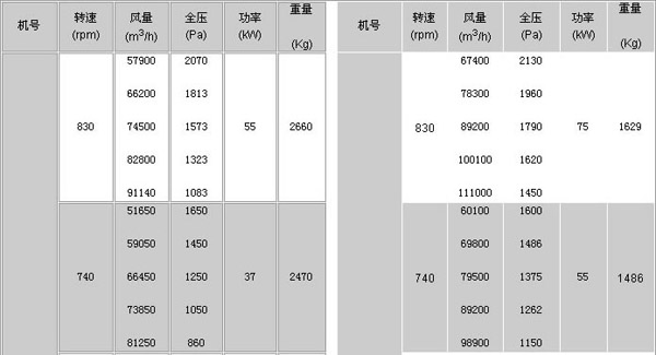 機號::2.8#-6# 風量:565-15455m3/h 風壓:176-3334pa