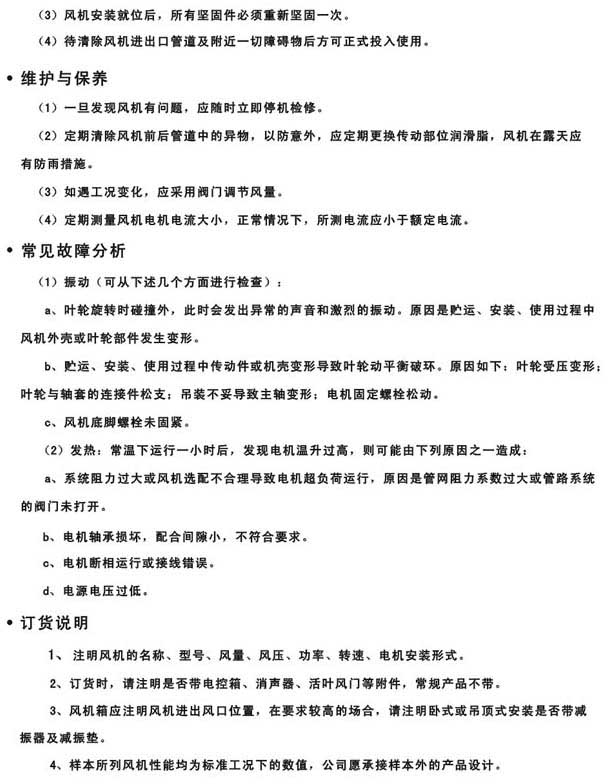 產品名稱:上虞上風風機安裝、維護及訂貨說明