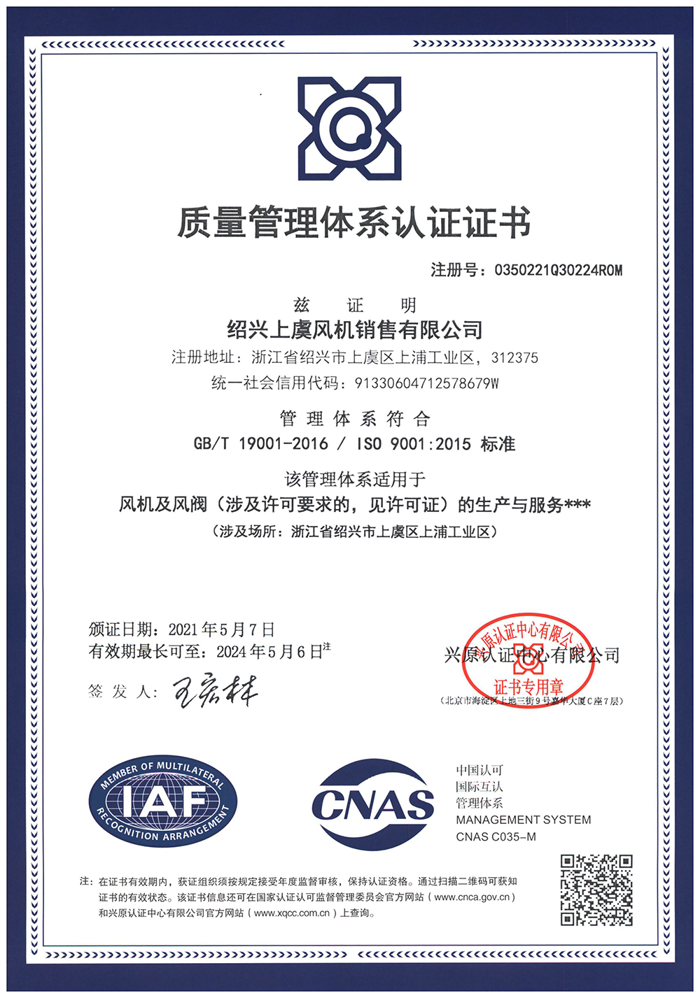 ISO9001:2000質(zhì)量體系認證·國家消防CCCF認證企業(yè)風(fēng)機專業(yè)制造商